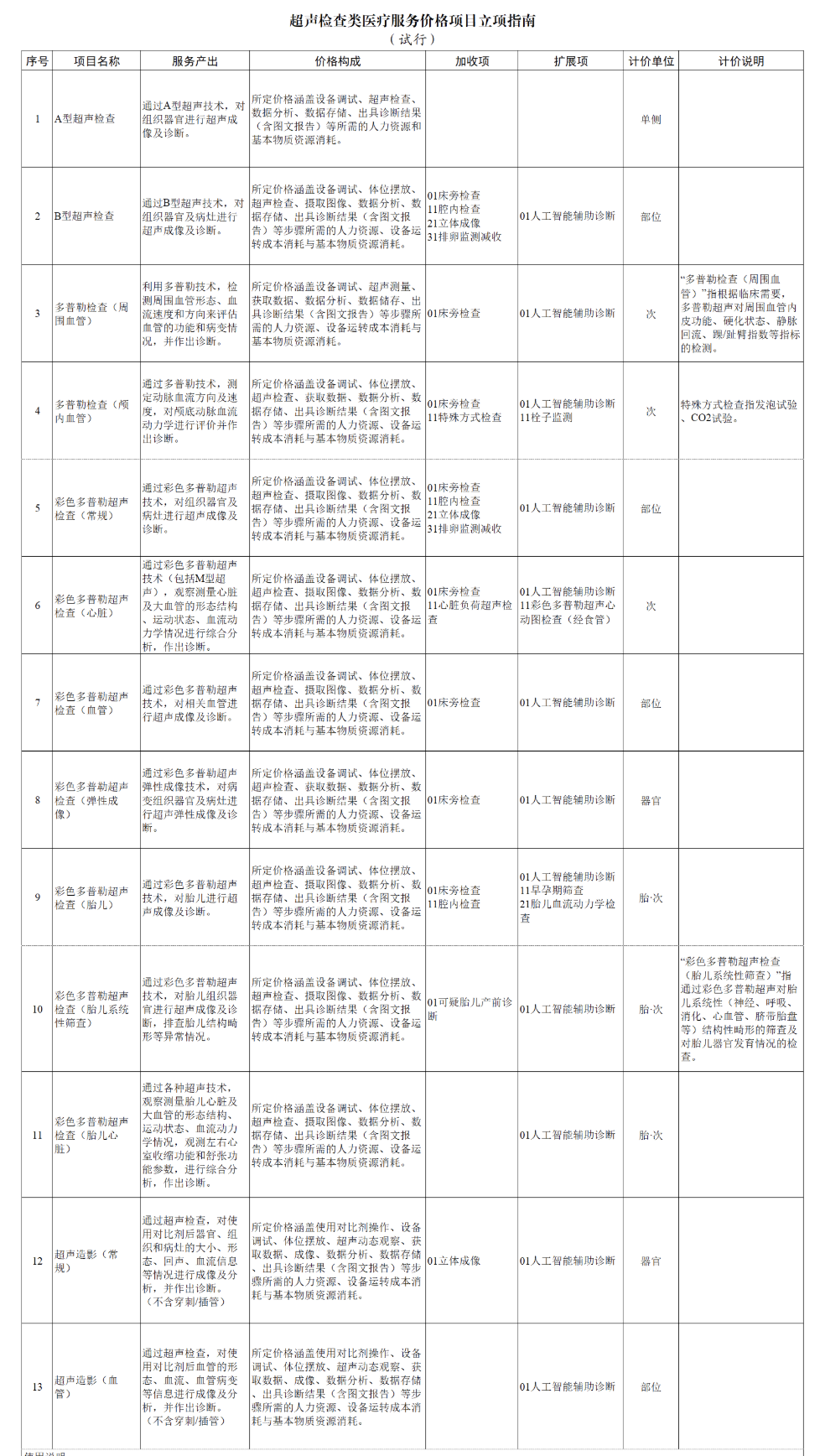 最新超声检查价格立项指南发布最新超声检查价格立项指南发布
