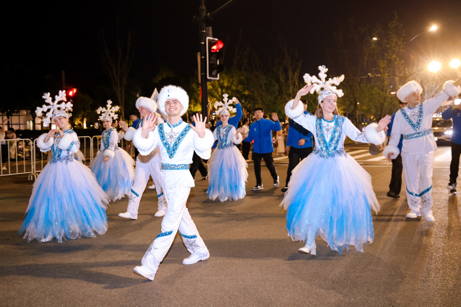 巡游过程中,耀雪冰雪世界的“雪嘻嘻”“火车精灵”“钟楼精灵”携手冰雪表演团从图灵广场出发,给市民观众带来了第36届上海旅游节大巡游活动开幕式上的“同款表演”。上海海昌海洋公园的“东方海洋”表演团则从滴水湖广场出发,以“蓝星战队・海陆机甲大巡游”为主题,融合海洋文化与科技元素,打造沉浸式文旅新体验。